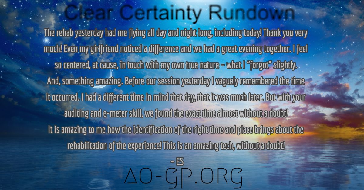 I just attested to my Ethics Repair Rundown, it was great to finally be forgiven for my sins and overts in my life and on my track. I feel calm and have a serenity of spirit that I have not felt...