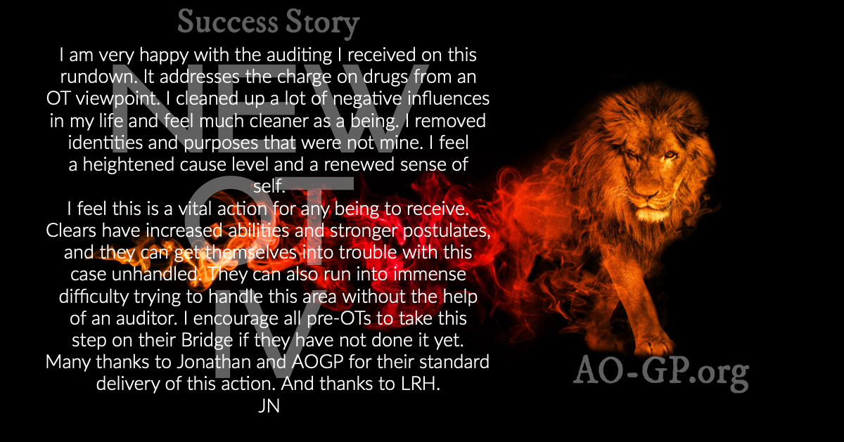 Read full story...I am very happy with the auditing I received on this rundown. It addresses the charge on drugs from an OT viewpoint. I cleaned up a lot of negative influences in my life and feel much cleaner as a...